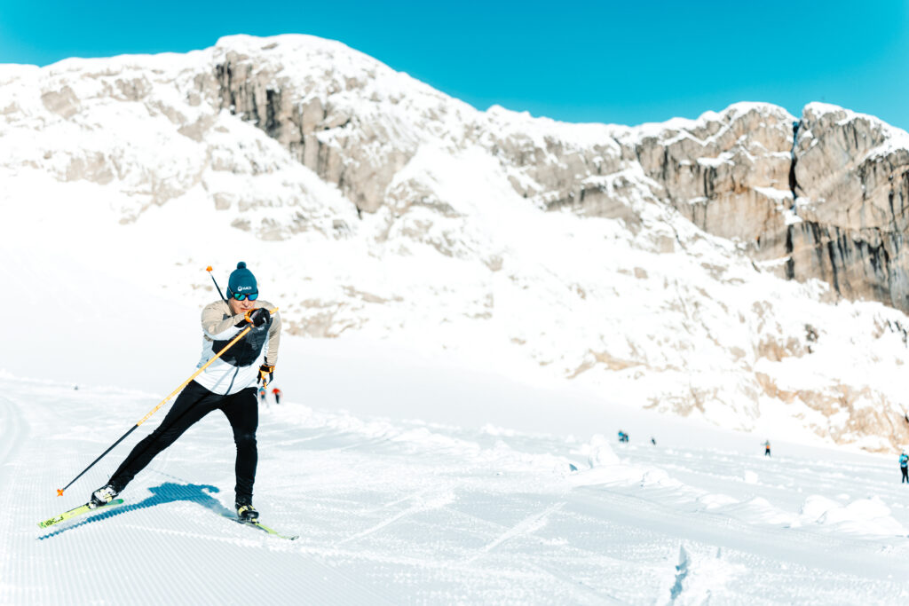 Case 2. Ramsau – Haltin malliston kuvaukset Ramsaussa, Itävallassa, jäätiköllä tarjosivat unohtumattoman mahdollisuuden yhdistää vuorien mystinen kauneus, vaativat olosuhteet ja toiminnalliset ulkoiluvaatteet. Jäätikkö tarjosi vaikuttavat puitteet, joissa jylhät lumiset huiput, laajat jääkentät ja kirkas vuoristoilma loivat ainutlaatuisen taustan kuvauksille.